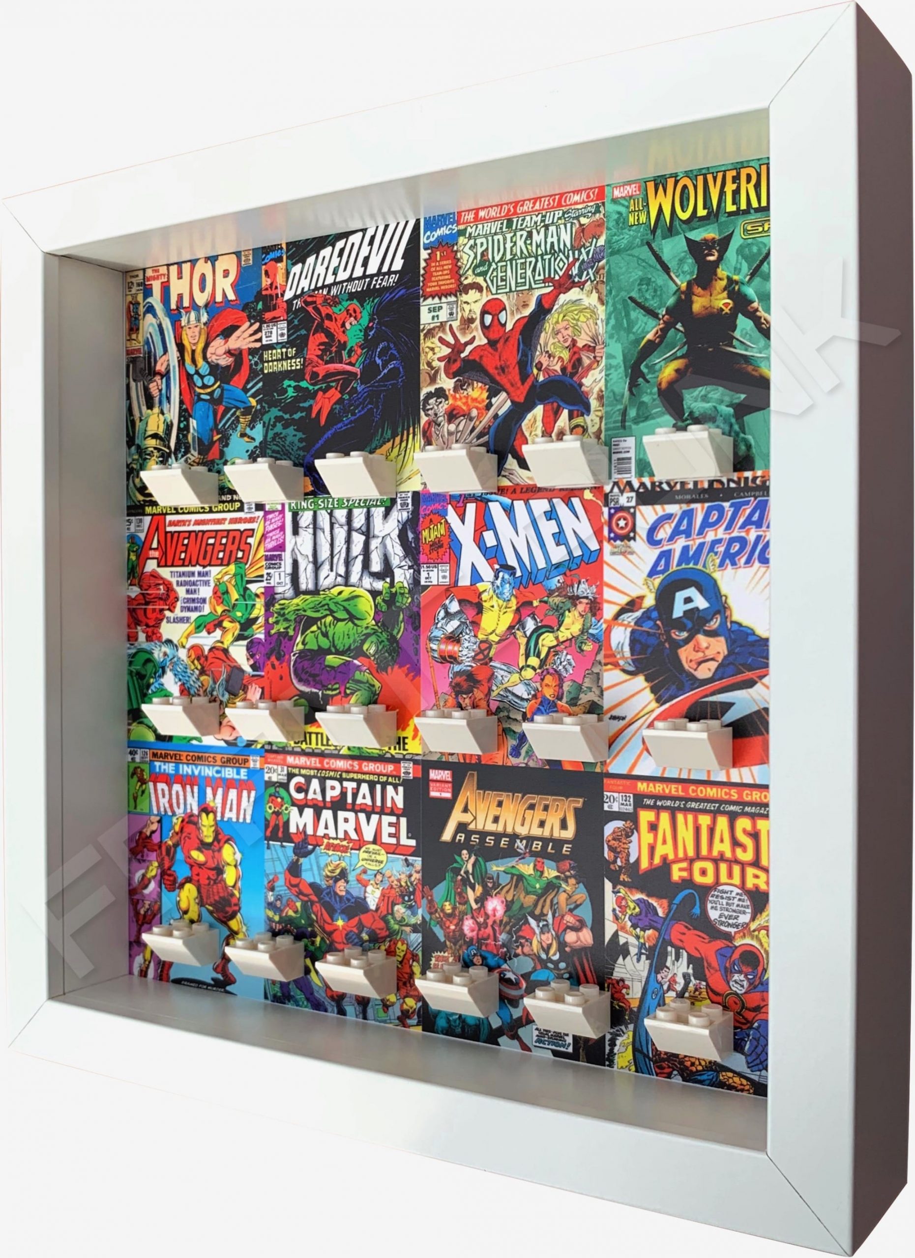 • FRAME PUNK Marvel comic covers display frame for superhero minifigures (white) Side view
