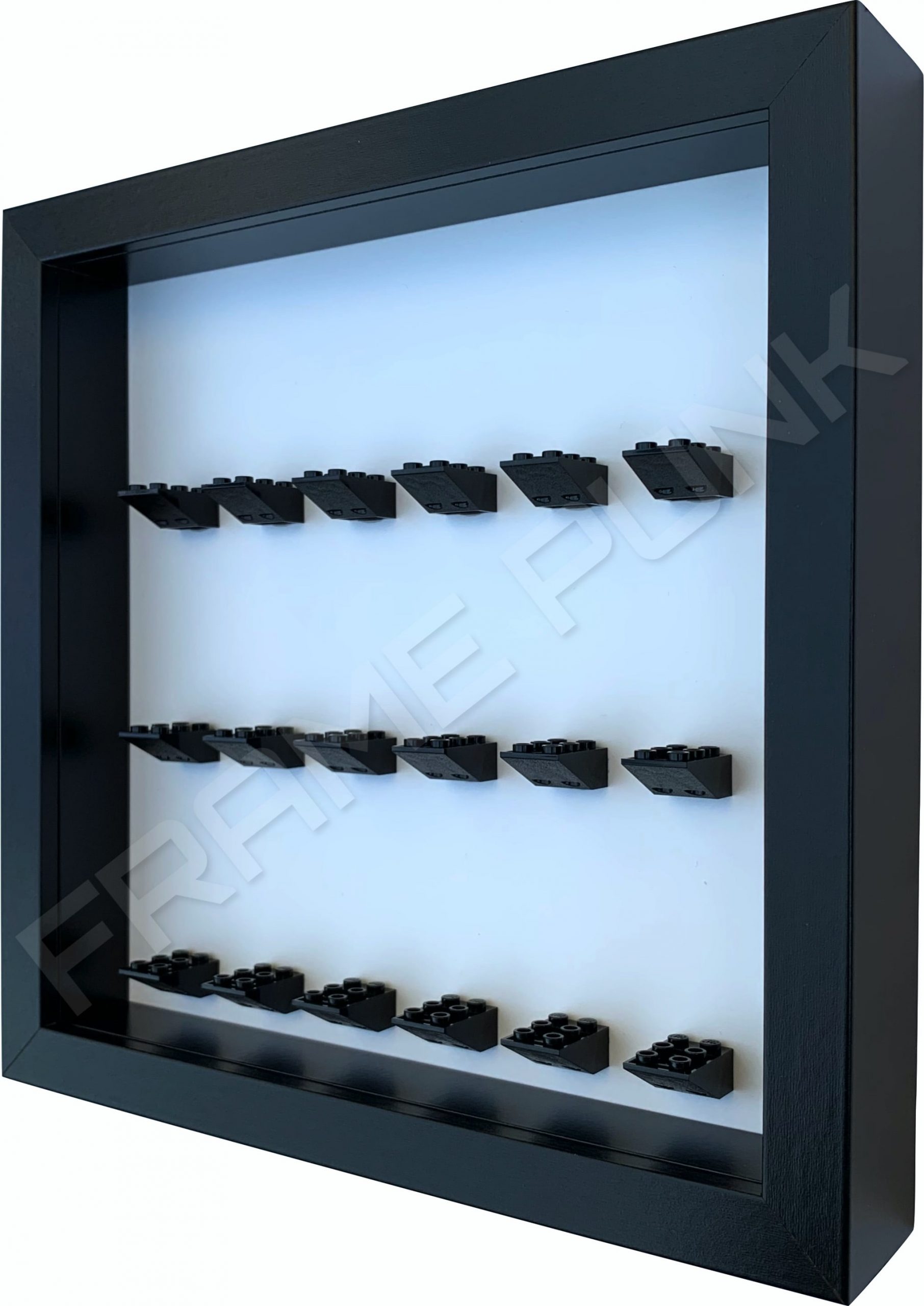 FRAMEPUNK minifigures display frame 18 2×3 mounts (black frame and black bricks) Side view