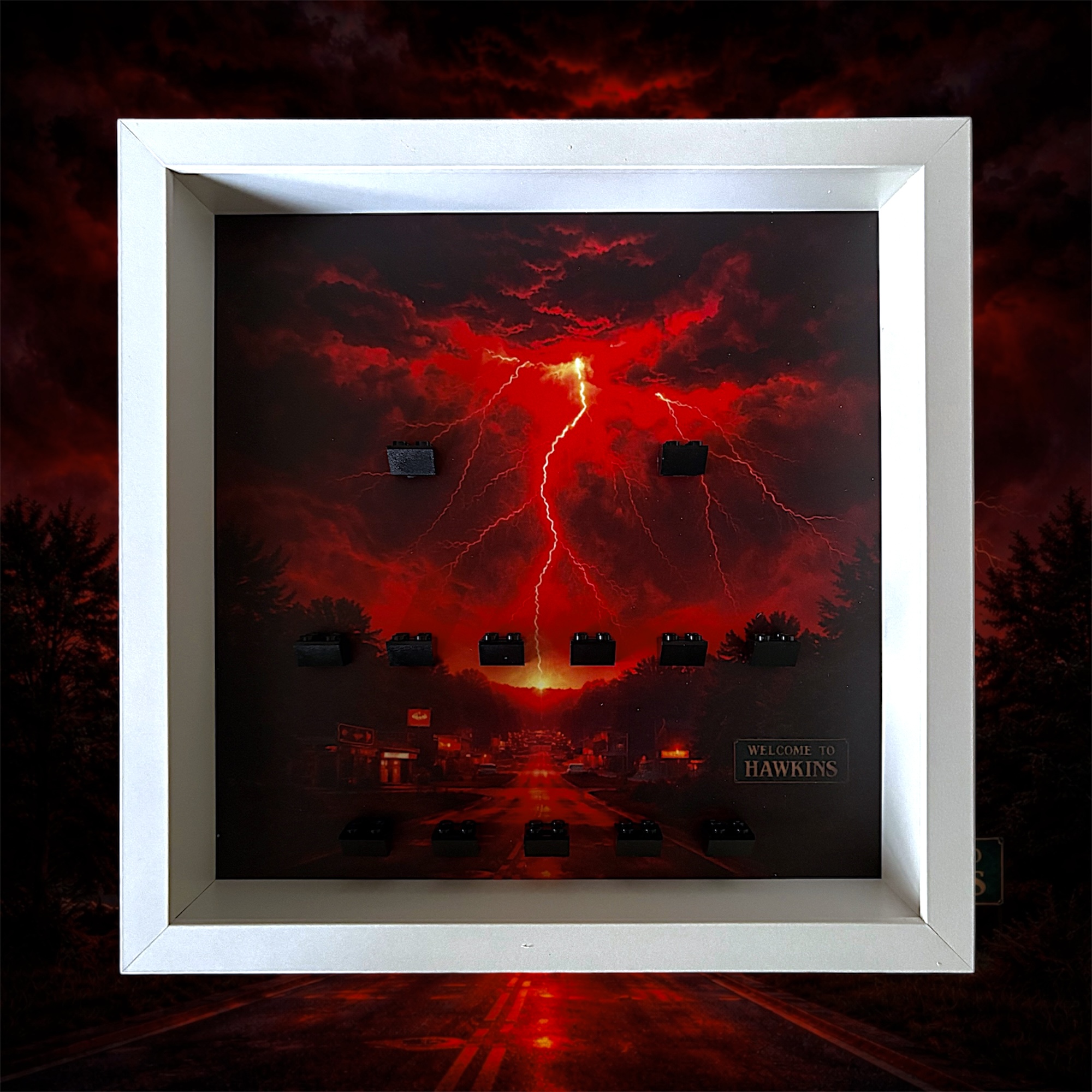 This Hawkins-themed frame draws inspiration from the creeping darkness of the Upside Down, creating a moody, atmospheric backdrop for your Stranger Things LEGO minifigures. Whether it’s Eleven, Mike, Dustin, Lucas, Will, or Chief Hopper, your figures are framed like they’ve stepped straight into something… not quite right.
